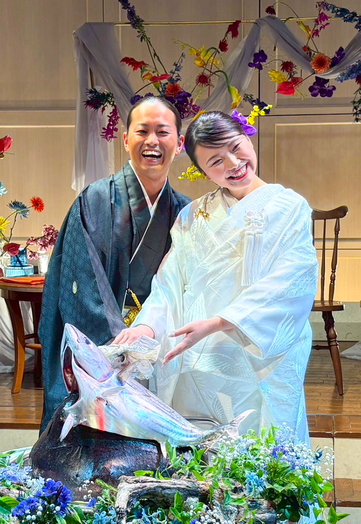 そんなお二人から「ウエディングケーキではなく魚に入刀したい!」と相談を受け、何が何でもお二人が感動するようなセレモニーにしようと燃えたのを覚えています。